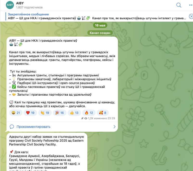 Чтобы ответить на эти вопросы, мы запускаем наш новый продукт — Telegram-канал AIBY. Это первая специализированная площадка, созданная для поддержки гражданских инициатив и НКО, которые используют искусственный интеллект в своей работе.